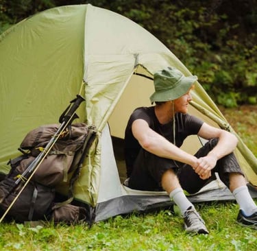 Emplacement pour 1 personne/ nuit/ incluant l’accès à une douche par jour, un emplacement tente